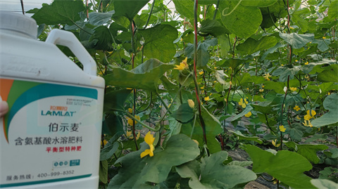 4、進(jìn)入授粉期:授粉期是羊角蜜甜瓜重要階段之一,一定注重花前補(bǔ)硼和花后補(bǔ)鈣,提高甜瓜坐果率,這個(gè)階段可使用伯示麥平衡沖施肥配合葉面噴施伯示麥氨基酸葉面肥+伯示麥磷酸二氫鉀,保證羊角蜜甜瓜的植株長(zhǎng)勢(shì),提高地力水平。