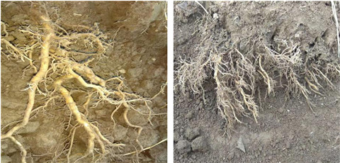 一個(gè)月以后的對(duì)比,根系茂盛,新生根多。而且每畝地只用了二十公斤化肥,用了兩次拉姆拉伯示麥生根劑,果農(nóng)看在眼,喜在心。所以,總結(jié)經(jīng)驗(yàn),過去的挫折,也是明天的經(jīng)驗(yàn)。