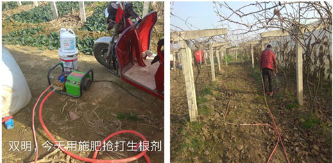 下圖是2019年11月28號(hào)雙明村,翠香獼猴桃果樹出現(xiàn)根腐病,使用拉姆拉伯示麥生根劑灌根的現(xiàn)場圖片,過去因缺少管理經(jīng)驗(yàn),大化肥施入過多,引起果樹根腐,現(xiàn)在經(jīng)過當(dāng)?shù)丶夹g(shù)老師的指導(dǎo),使用伯示麥生根劑套餐灌根,促進(jìn)根系新生,伯示麥生根劑耐高溫和低溫,在零下10攝氏度一樣能使用,特別添加核心成份聚谷氨酸,保水保肥性好,添加生根因子,生根刺激素,北大西洋馬尾草中提取,生物型,安全性好,不燒根,效果顯著。
